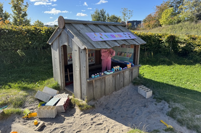 12.00-13.30: Alle børnehavebørn og de største vuggestuebørn, der ikke sover til middag, er på legepladsen. Her er der rig mulighed for lege på tværs af stuerne og til at skabe relationer på tværs. Her vil du møde fantasifulde børn, som leger is-butik eller politi og røver, og du vil møde nærværende voksne der står klar til at støtte og guide børnene når der er noget der bøvler.